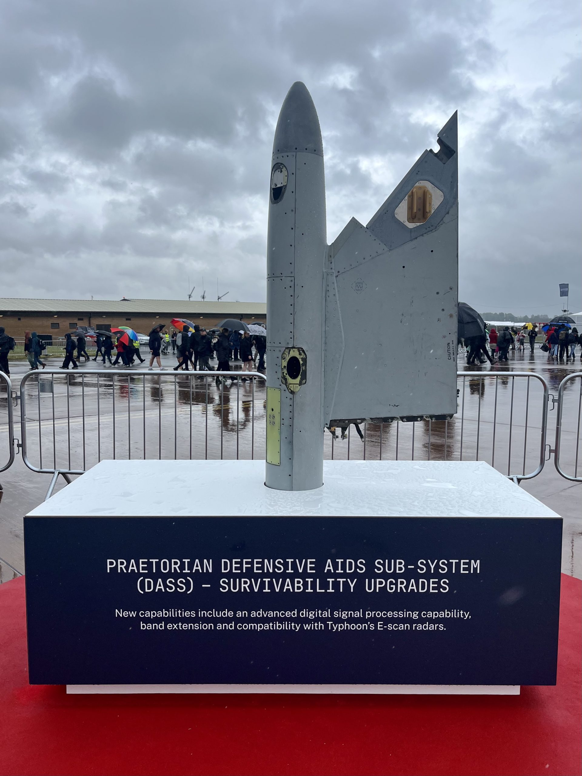 At the Royal International Air Tattoo (RIAT), the world’s largest military air event, Leonardo, on behalf of the EuroDASS consortium (Leonardo, Elettronica, Indra and Hensoldt), announced the next package of improvements to the Praetorian DASS self-protection system. This has been accompanied by a static exhibition of the key enhancement proposed, including the bandwidth enhancement developed by Indra.
