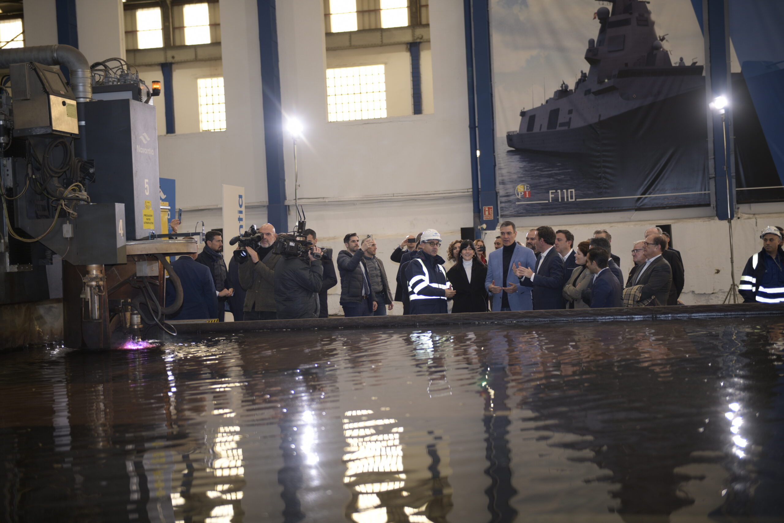 The cut of the first steel of the F-112 took place last Saturday 16th December at Navantia’s shipyard in Ferrol (A Coruña, Spain), in the presence of the President of the Spanish Government, Pedro Sánchez; the Fourth Vice-President of the Spanish Government and Minister of Finance and Public Function, María Jesús Montero; the President of SEPI, Belén Gualda and the President of Navantia, Ricardo Domínguez.