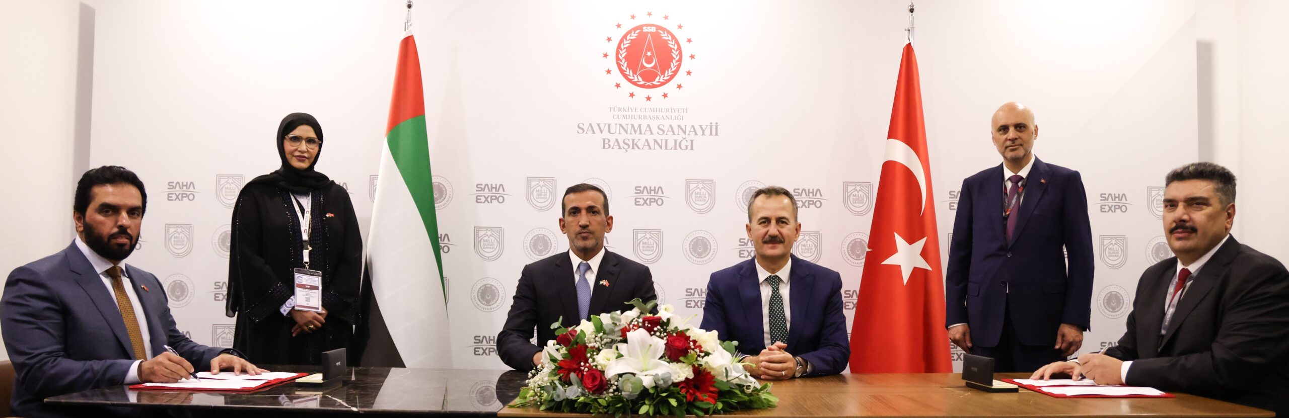Dr. Khalifa ALBLOOSHI, CEO of Calidus Holding Group and Dr. Mehmet Akif NACAR, CEO of HAVELSAN, signing the Agreement at SAHA Expo 2024 at Istanbul, in the presence of Mr. Haluk GÖRGÜN of Secretary of Turkish Defence Industries and H.E. Mohamed bin Fadhil Al Mazrouei, UAE Minister of State for Defense Affairs.