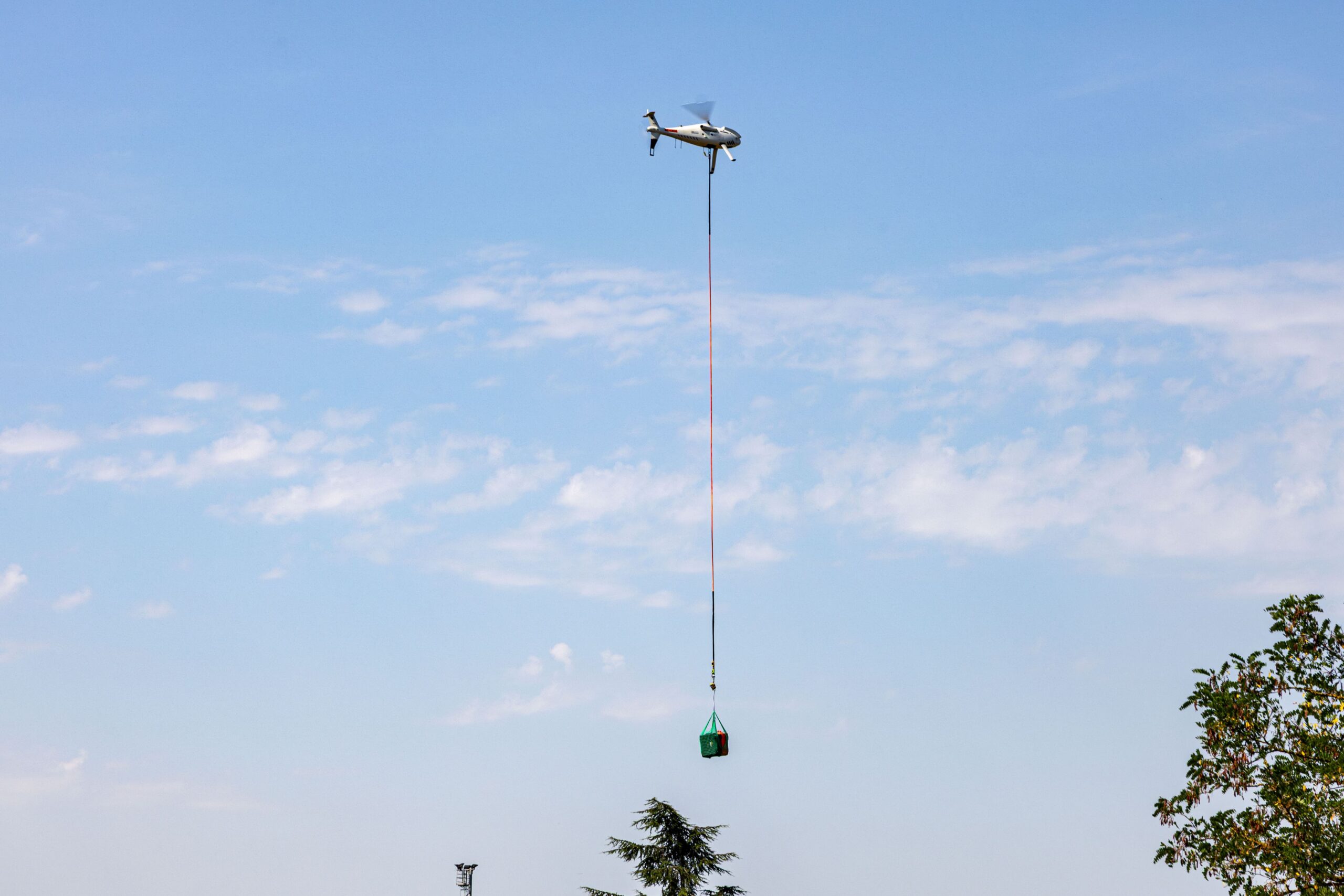 Schiebel’s CAMCOPTER® S-100 conducted multiple daily logistics missions using an underslung cargo net, successfully transporting suspended cargo of more than 50 kg under challenging battlefield conditions. The UAS consistently demonstrated its robustness, reliability, and mission effectiveness – even when exposed to degraded communications, adverse weather, and contested operational environments.