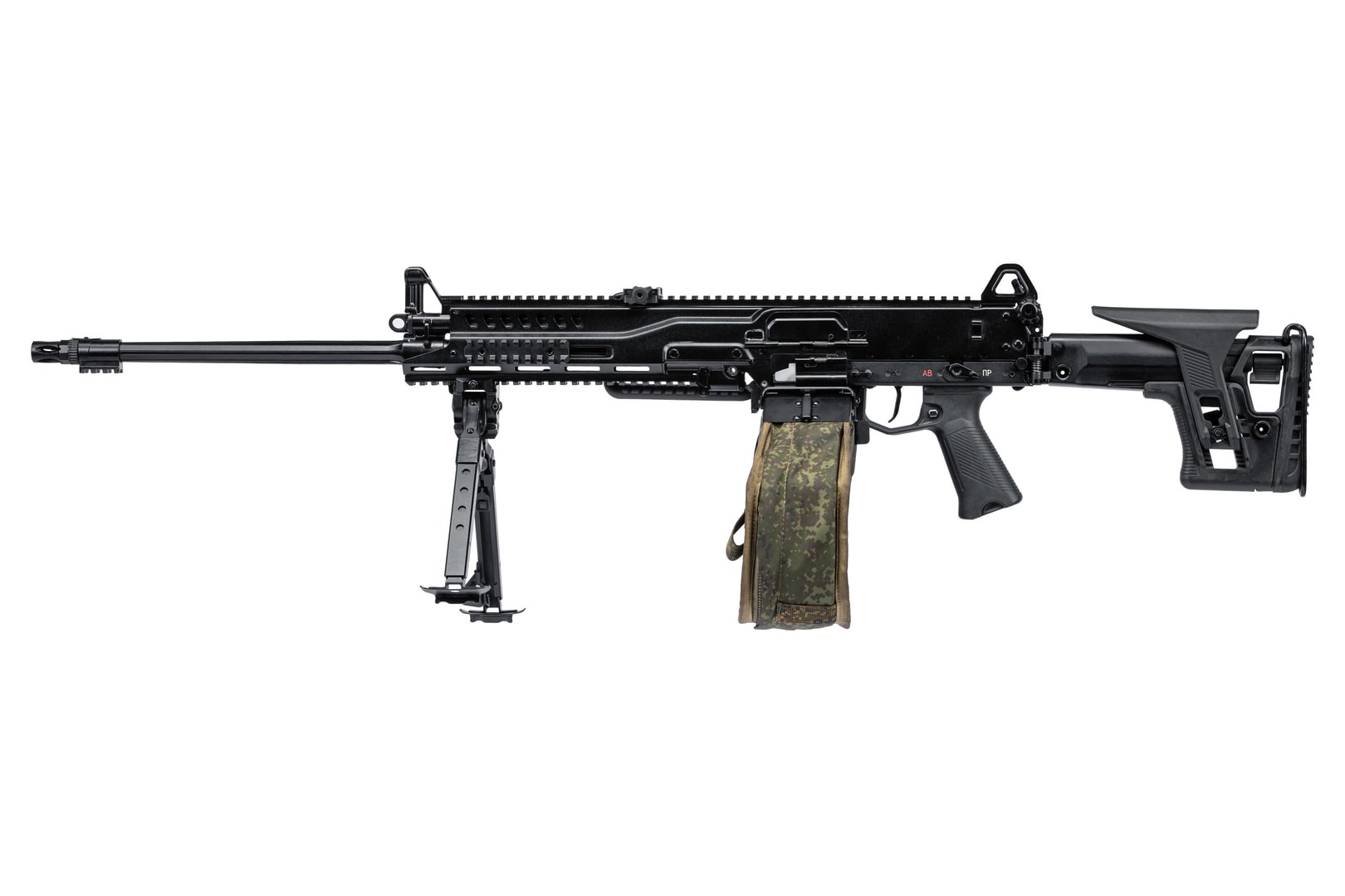 The Kalashnikov RPL family of machine guns includes the RPL-7 and RPL-20 models. Designed for operational versatility, these lightweight machine guns use a continuous feedbelt and can be equipped with modern mission-specific equipment, including optical sights and lights. Key features also include a belt that can be loaded by pulling through without opening the receiver and a folding adjustable stock.