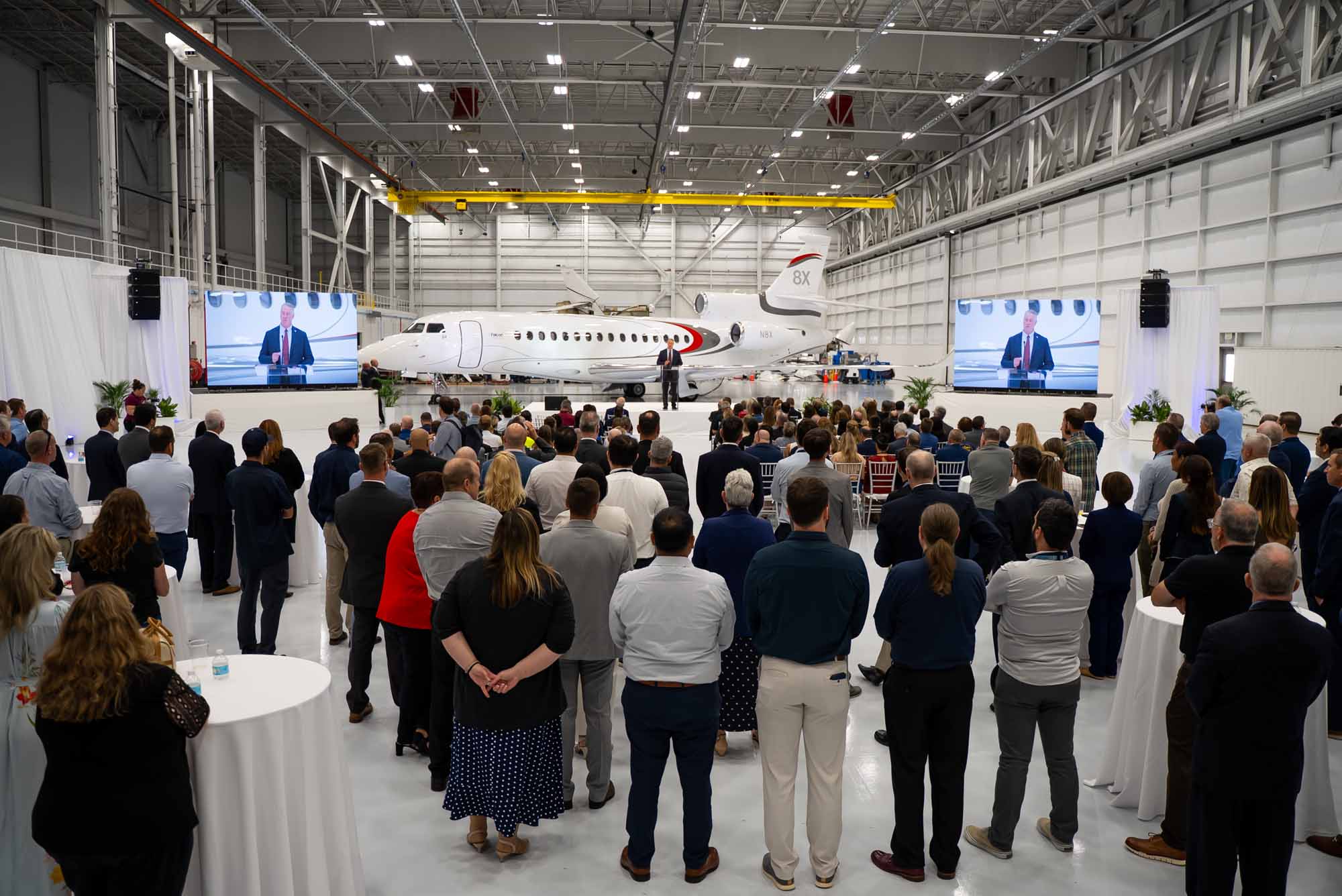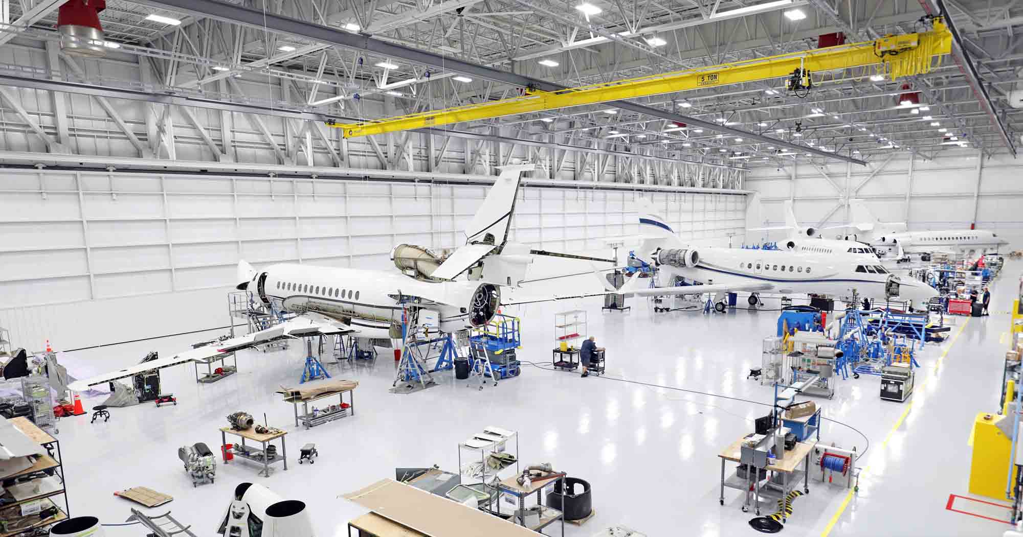 Intended to serve customers across North and South America and beyond, the 250,000 square-foot complex can accommodate all current Falcon models (including the in-development, ultra-long-range Falcon 10X, the largest purpose-built business jet). It is capable of performing major maintenance and modifications on up to 14 Falcon aircraft simultaneously.