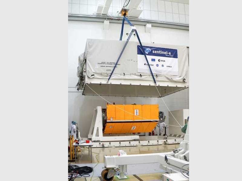 Airbus-built Copernicus satellite Sentinel-6 Michael Freilich is readied to fly to Vandenberg for launch